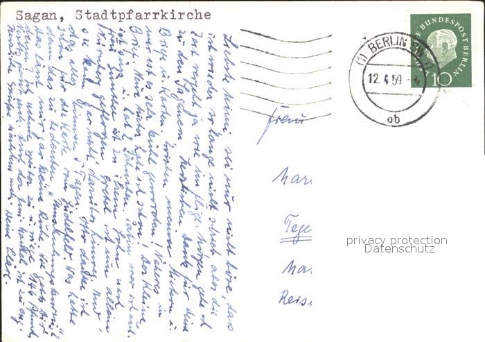 old postcard Sagan Stadtpfarrkirche postalisch gelaufen Erhaltung siehe scans