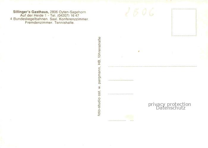 74150724 Sagehorn Oyten VERDEN Niedersachsen Sillingers Gasthaus Tennishalle Hallenbad Bar postalisch nicht gelaufen Erhaltung siehe scans [WerneD78] KatCode: 11110003361009