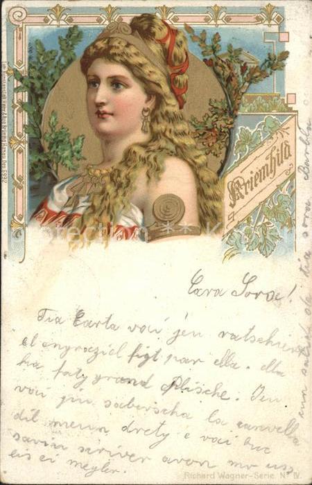 alte Postkarte Sagen Maerchen Kriemhild Litho postalisch gelaufen