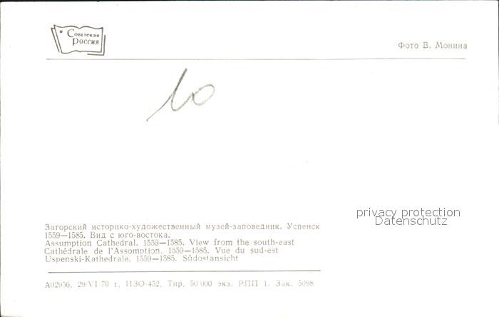 Sagorsk Sergijew Possad Museum Cathedrale postalisch nicht gelaufen Keine Postkarte (siehe scan) Erhaltung siehe scans
