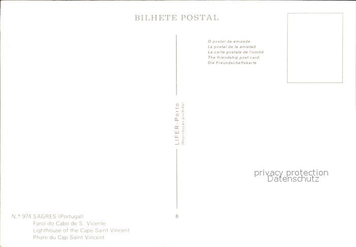 Sagres Algarve Farol do Cabo de S. Vicence postalisch nicht gelaufen Erhaltung siehe scans