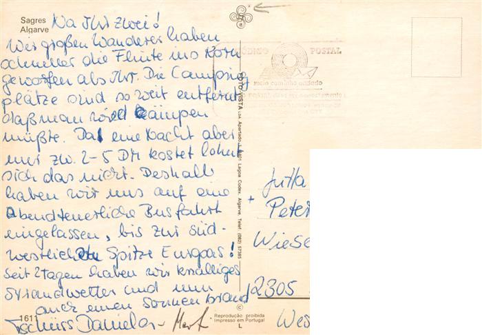 old postcard Sagres Algarve PT Fliegeraufnahme postalisch gelaufen Erhaltung siehe scans [FriedD77]