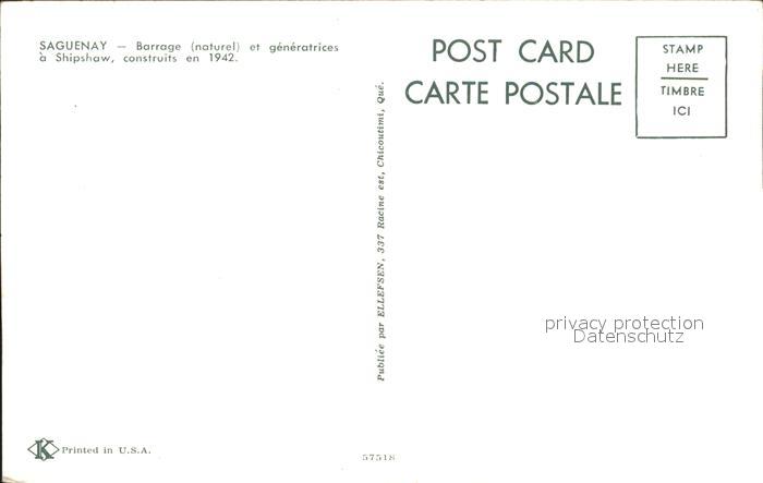Saguenay Barrage generatrices Shipshaw postalisch nicht gelaufen Erhaltung siehe scans