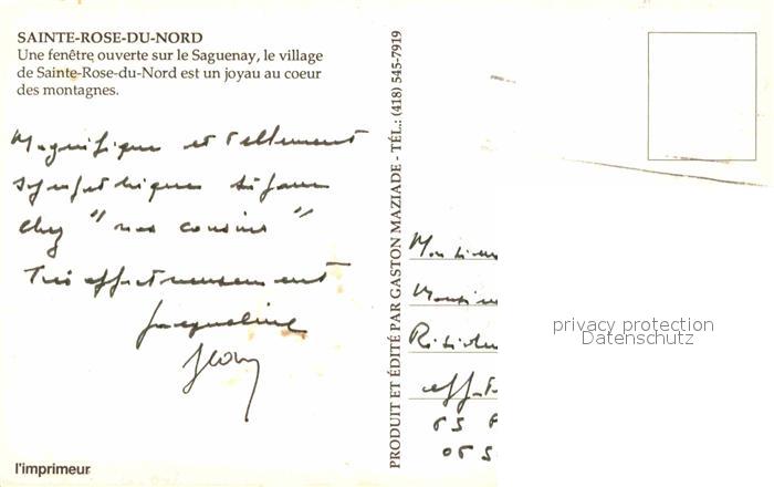 old postcard Saguenay Sainte Rose Du Nord Kirche postalisch gelaufen Erhaltung siehe scans [KathaD81]