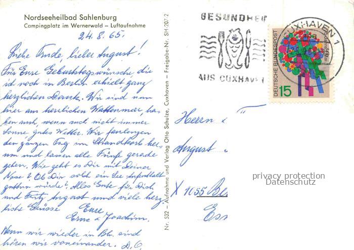 74095638 alte Postkarte Sahlenburg Cuxhaven Campingplatz im Wernerwald Fliegeraufnahme postalisch gelaufen Erhaltung siehe scans [WerneD78] KatCode: 11110003352011