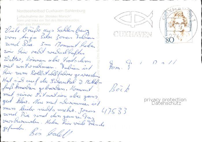 72280473 alte Postkarte Sahlenburg Fliegeraufnahme Wolsker Marsch postalisch gelaufen Erhaltung siehe scans KatCode: 11110003352011