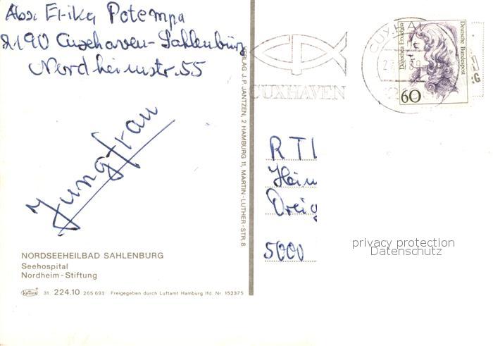 73841620 alte Postkarte Sahlenburg Nordseeheilbad Seehospital Nordheim Stiftung postalisch gelaufen Erhaltung siehe scans [WerneD78] KatCode: 11110003352011