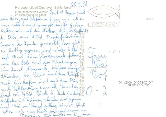 73707818 alte Postkarte Sahlenburg Nordseeheilbad postalisch gelaufen Fliegeraufnahme Erhaltung siehe scans [FriedD77] KatCode: 11110003352011