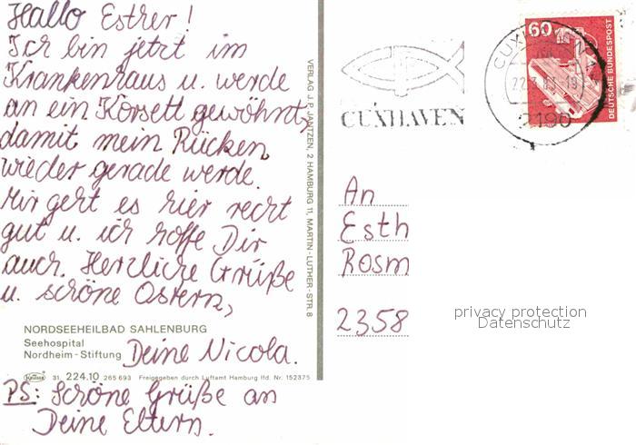 72734002 alte Postkarte Sahlenburg Seehospital Nordheim Stiftung Fliegeraufnahme postalisch gelaufen Erhaltung siehe scans [FriedD77] KatCode: 11110003352011