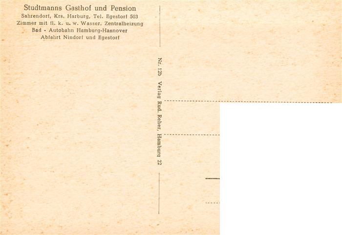 73878239 Sahrendorf Egestorf Studtmanns Gasthof Pension Lueneburger Heide postalisch nicht gelaufen Erhaltung siehe scans [FriedD77] KatCode: 11110003353009