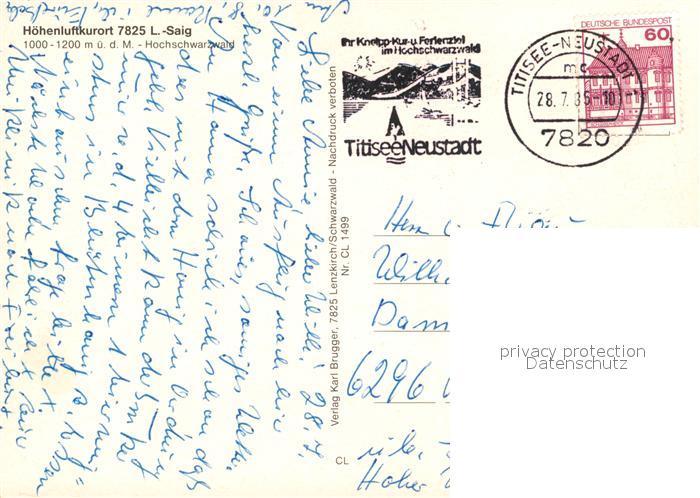 73190255 alte Postkarte Saig Schwarzwald postalisch gelaufen Erhaltung siehe scans [NatalD47] KatCode: 11110008315068