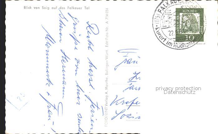 72191832 alte Postkarte Saig Schwarzwald Blick ins Falkauer Tal postalisch gelaufen Erhaltung siehe scans KatCode: 11110008315068