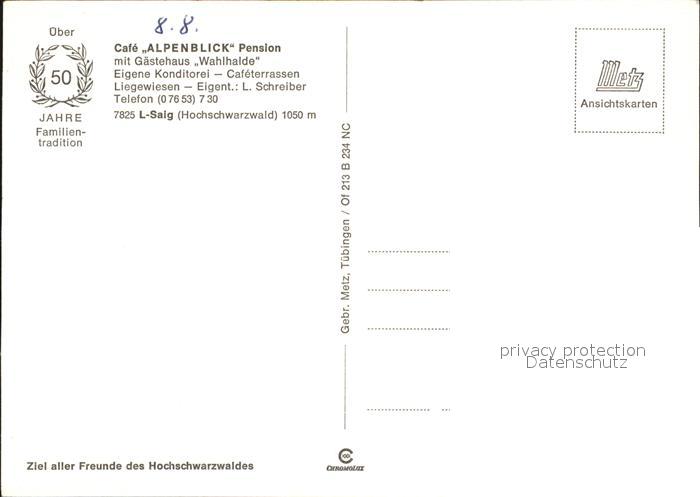 72609710 Saig Schwarzwald Cafe Alpenblick Pension Wahlhalde postalisch nicht gelaufen Erhaltung siehe scans [LiesaD40] KatCode: 11110008315068