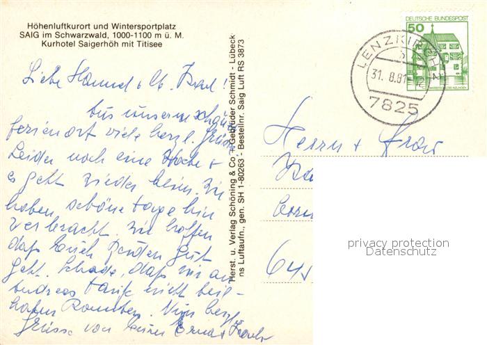 73031398 alte Postkarte Saig Schwarzwald Fliegeraufnahme Kurhotel Saigerhoeh Titisee postalisch gelaufen Erhaltung siehe scans [KathaD81] KatCode: 11110008315068