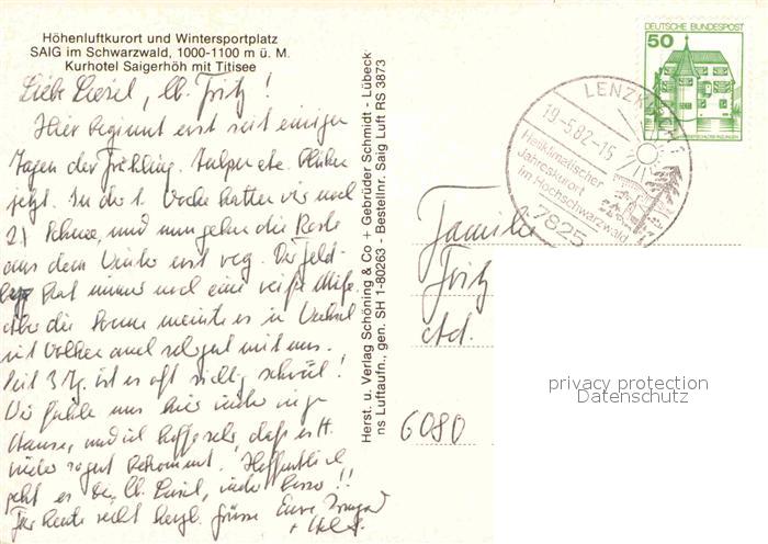 72760559 alte Postkarte Saig Schwarzwald Fliegeraufnahme Kurhotel Saigerhoeh postalisch gelaufen Erhaltung siehe scans [LiesaD40] KatCode: 11110008315068