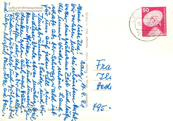 73907723 alte Postkarte Saig Schwarzwald Fliegeraufnahme mit Feldbergblick postalisch gelaufen Erhaltung siehe scans [WerneD78] KatCode: 11110008315068