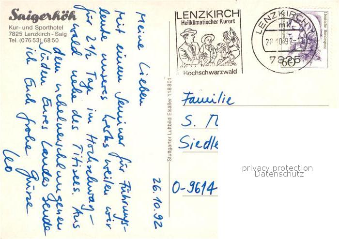 72967792 alte Postkarte Saig Schwarzwald Fliegeraufnahme Saigerhoeh postalisch gelaufen Erhaltung siehe scans [LiesaD40] KatCode: 11110008315068