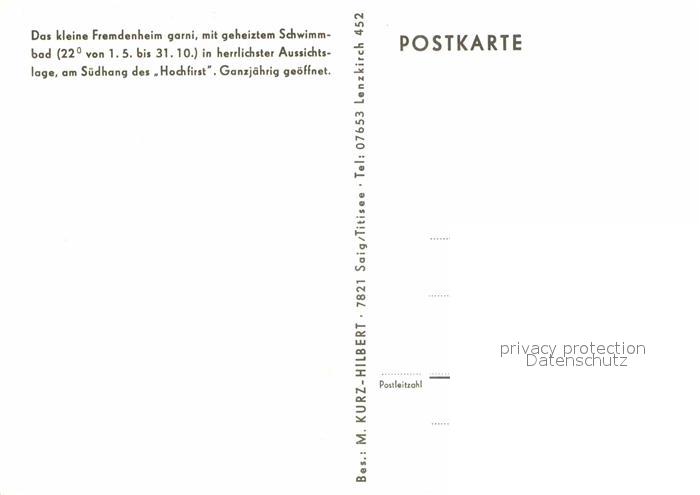 72719762 Saig Schwarzwald Fremdenheim Garni mit Schwimmbad postalisch nicht gelaufen Erhaltung siehe scans [LiesaD40] KatCode: 11110008315068
