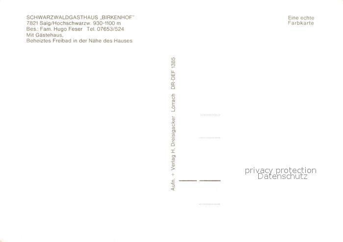 73080979 Saig Schwarzwald Gasthaus Birkenhof Freibad postalisch nicht gelaufen Erhaltung siehe scans [LiesaD40] KatCode: 11110008315068