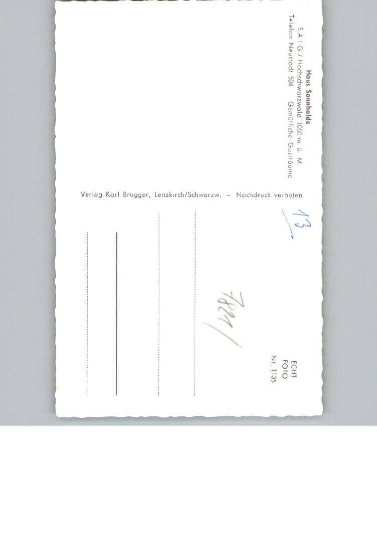 31164864 Saig Schwarzwald Gasthaus Haus Sonnhalde postalisch nicht gelaufen KatCode: 11110008315068
