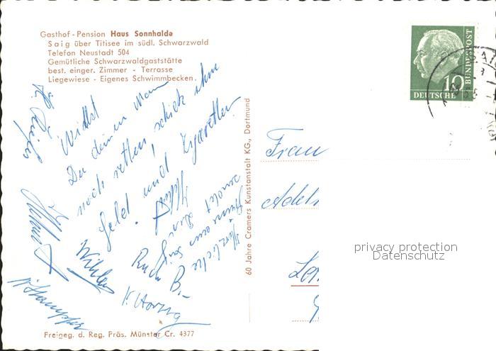 71993035 alte Postkarte Saig Schwarzwald Gasthof Haus Sonnhalde postalisch gelaufen Erhaltung siehe scans KatCode: 11110008315068