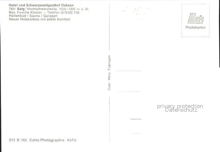 41784672 Saig Schwarzwald Gasthof Ochsen postalisch nicht gelaufen Erhaltung siehe scans KatCode: 11110008315068