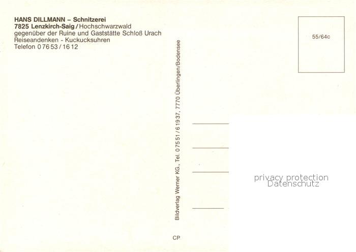 73099364 Saig Schwarzwald Hans Dillmann Schnitzerei postalisch nicht gelaufen Erhaltung siehe scans [WerneD78] KatCode: 11110008315068