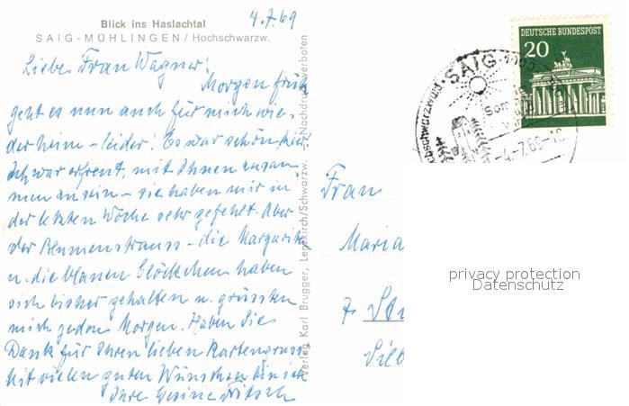 72749253 alte Postkarte Saig Schwarzwald Haslachtal postalisch gelaufen Erhaltung siehe scans [AndreD76] KatCode: 11110008315068