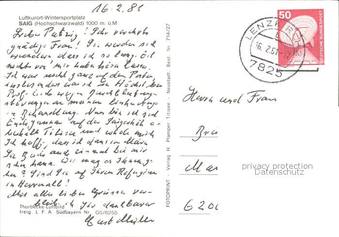 72370816 alte Postkarte Saig Schwarzwald Hochfirst postalisch gelaufen Erhaltung siehe scans KatCode: 11110008315068