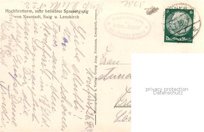 73809671 alte Postkarte Saig Schwarzwald Hochfirstturm mit Rasthaus Waldheim postalisch gelaufen Erhaltung siehe scans [FriedD77] KatCode: 11110008315068