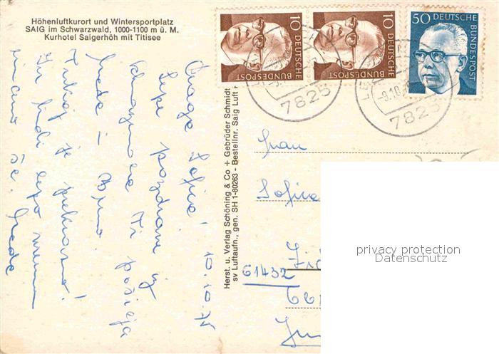 72872389 alte Postkarte Saig Schwarzwald Hoehenluftkurort Wintersportplatz im Schwarzwald Kurhotel Saigerhoeh mit Titisee Fliegeraufnahme postalisch gelaufen Erhaltung siehe scans [FriedD77] KatCode: 11110008315068