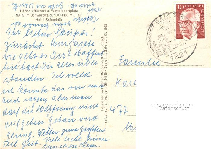73057154 alte Postkarte Saig Schwarzwald Hotel Saigerhoeh Fliegeraufnahme postalisch gelaufen Erhaltung siehe scans [WerneD78] KatCode: 11110008315068