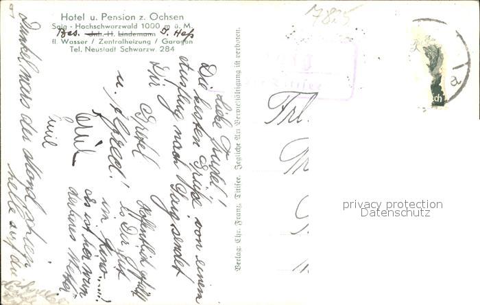 31727974 alte Postkarte Saig Schwarzwald Hotel z. Ochsen postalisch gelaufen Erhaltung siehe scans KatCode: 11110008315068