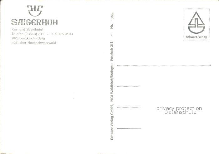 72528084 Saig Schwarzwald Kur und Sporthotel Saigerhoeh postalisch nicht gelaufen Erhaltung siehe scans KatCode: 11110008315068