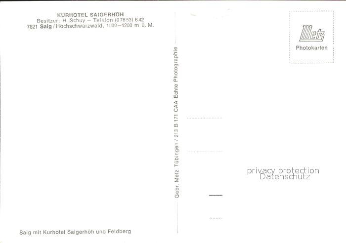 41784661 Saig Schwarzwald Kurhotel Saigerhoeh Feldberg postalisch nicht gelaufen Erhaltung siehe scans KatCode: 11110008315068