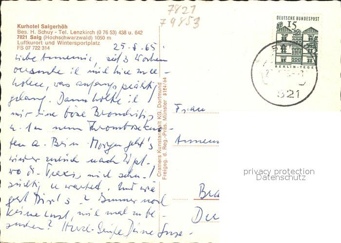 72609712 alte Postkarte Saig Schwarzwald Kurhotel Saigerhoeh Fliegeraufnahme postalisch gelaufen Erhaltung siehe scans [LiesaD40] KatCode: 11110008315068