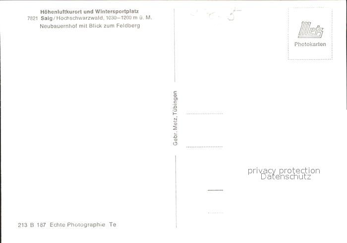 41784654 Saig Schwarzwald Neubauernhof Blick Feldberg postalisch nicht gelaufen Erhaltung siehe scans KatCode: 11110008315068