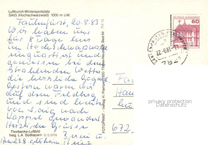 73265875 alte Postkarte Saig Schwarzwald Panorama Blick zum Feldberg Ortsansichten Kirche postalisch gelaufen Erhaltung siehe scans [FriedD77] KatCode: 11110008315068