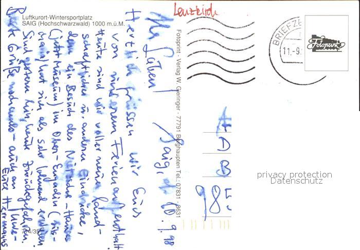 72512929 alte Postkarte Saig Schwarzwald Panorama Kirche Dorfpartie postalisch gelaufen Erhaltung siehe scans KatCode: 11110008315068