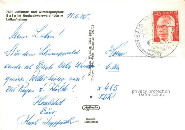 74136720 alte Postkarte Saig Schwarzwald Panorama Luftkurort Wintersportplatz postalisch gelaufen Fliegeraufnahme Erhaltung siehe scans [FriedD77] KatCode: 11110008315068