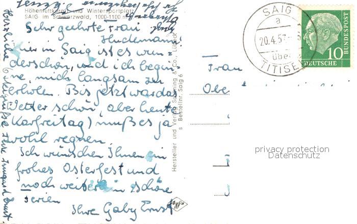 72961977 alte Postkarte Saig Schwarzwald Panorama Luftkurort Wintersportplatz postalisch gelaufen Erhaltung siehe scans [FriedD77] KatCode: 11110008315068