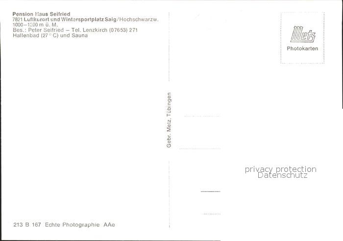 41784670 Saig Schwarzwald Pension Haus Seifried postalisch nicht gelaufen Erhaltung siehe scans KatCode: 11110008315068