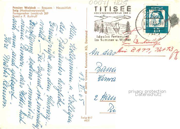 72842713 alte Postkarte Saig Schwarzwald Pension Waldeck postalisch gelaufen Erhaltung siehe scans [AndreD76] KatCode: 11110008315068