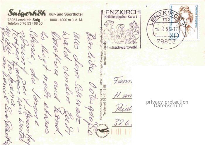 74093823 alte Postkarte Saig Schwarzwald Saigerhoeh Kur und Sporthotel postalisch gelaufen Erhaltung siehe scans [WerneD78] KatCode: 11110008315068
