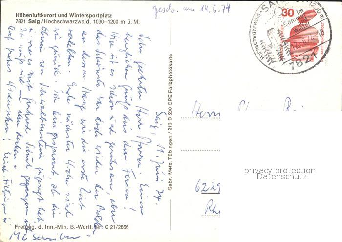 72559543 alte Postkarte Saig Schwarzwald Wintersportplatz Hoehenluftkurort postalisch gelaufen Erhaltung siehe scans [AntonD74] KatCode: 11110008315068