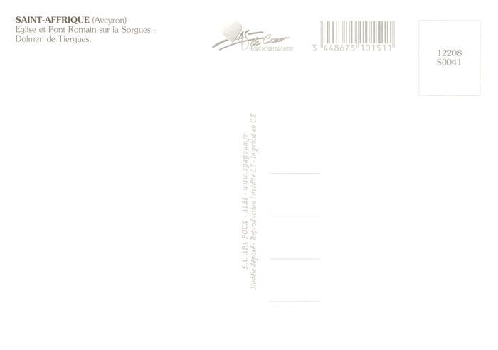 13949083 Saint-Affrique Eglise et Pont Romain sur la Sorgues Dolmen de Tiergues postalisch nicht gelaufen Erhaltung siehe scans [WerneD78] Wern Katcode 11170012112208