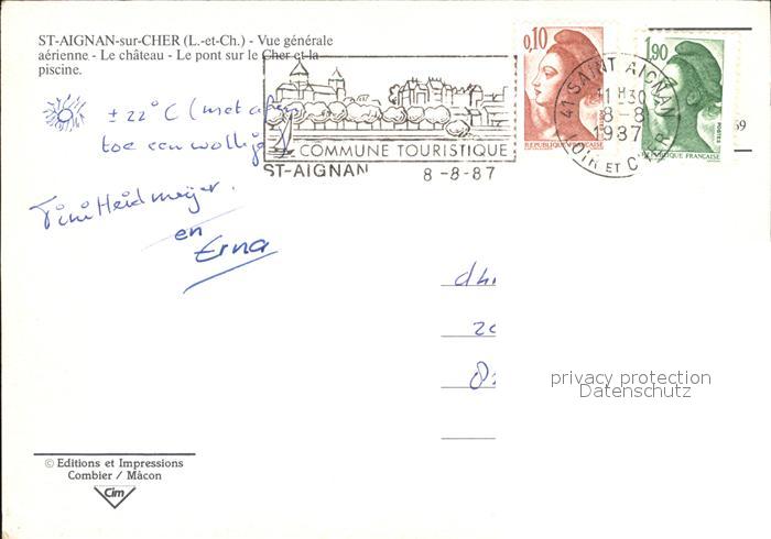 12504190 carte postale Saint-Aignan Loir-et-Cher Fliegeraufnahme postalisch gelaufen Erhaltung siehe scans KatCode: 11170041341198