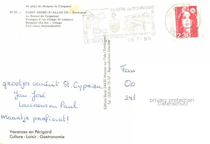 12698358 carte postale Saint-Andre-d Allas Le Breuil de Calpalmal postalisch gelaufen Erhaltung siehe scans [WerneD78] KatCode: 11170024424366