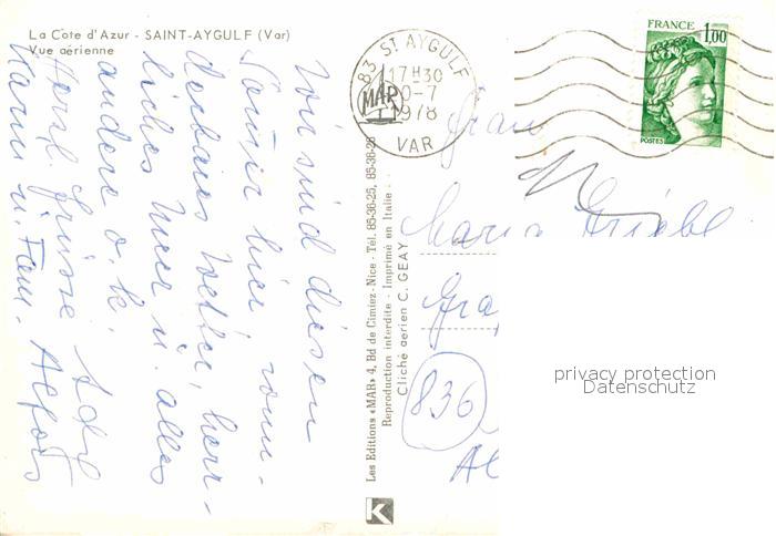 12904224 carte postale Saint-Aygulf Var Fliegeraufnahme postalisch gelaufen Erhaltung siehe scans [NatalD47] KatCode: 11170083183061