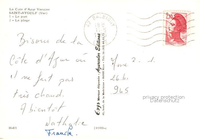 13579089 carte postale Saint-Aygulf Var Le port et la plage postalisch gelaufen Erhaltung siehe scans [FriedD77] KatCode: 11170083183061